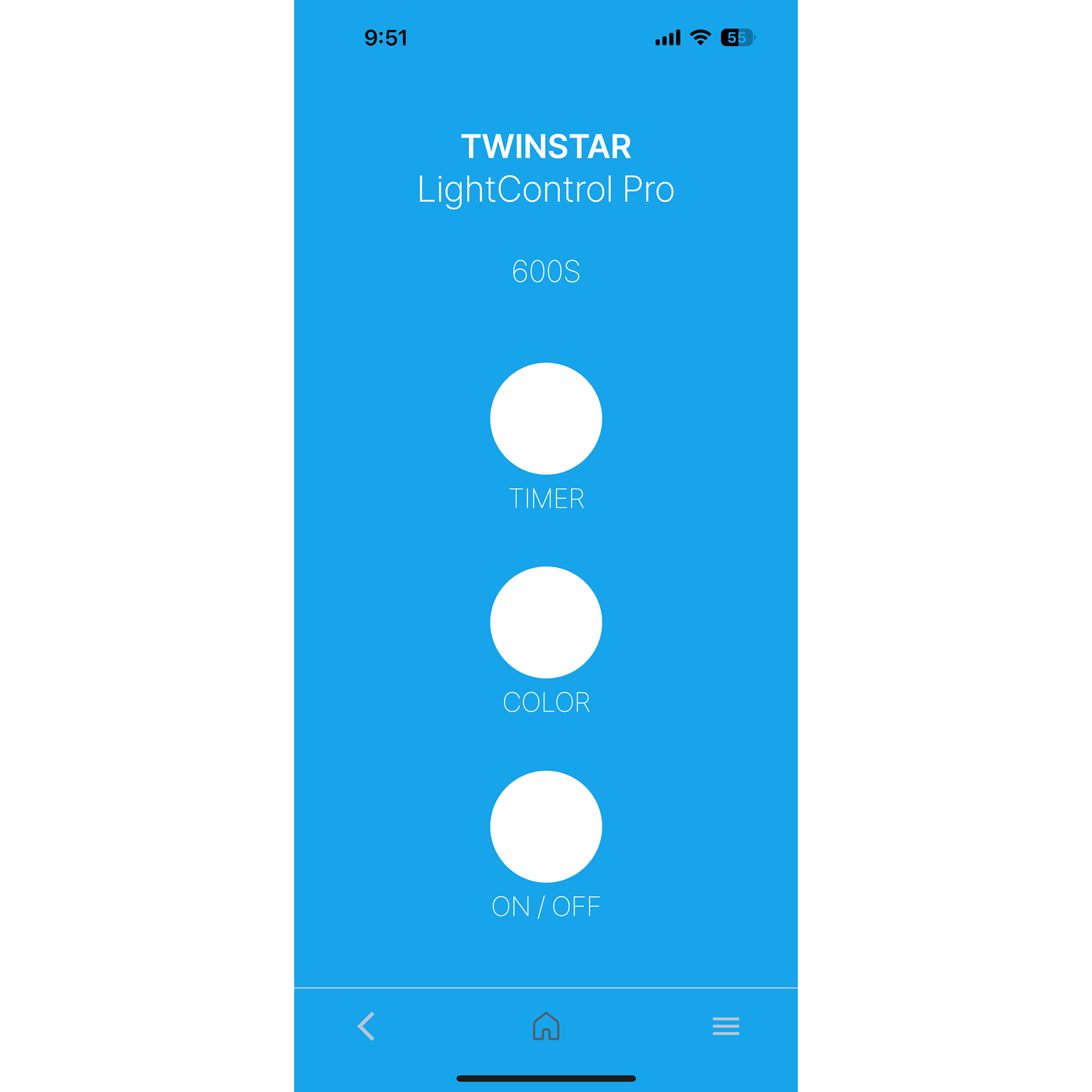 The TWINSTAR B Line comes with LightControl Standard as default. Key features include essential Bluetooth functions such as timer, brightness adjustment, sunrise/sunset effects, and Light Planner. This product does not support color control.